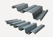 Une tôle en acier galvanisé de forme nervurée, de 0,75 mm d'épaisseur, 44 mm de hauteur du profilé et 172 mm d'entraxe, 7 à 8 kg/m² et un moment d'inertie de 30 à 40 cm4. |